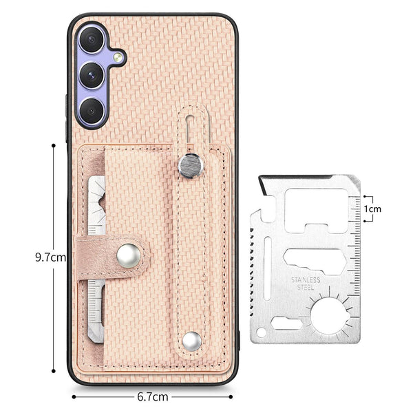For Samsung Galaxy S25+ 5G Wristband Kickstand Wallet Back Phone Case with Tool Knife(Khaki)