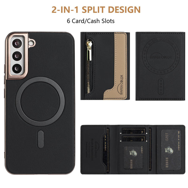 For Samsung Galaxy S25+ 5G Zipper Horizontal Magnetic Card Bag RFID MagSafe Phone Case(Black)