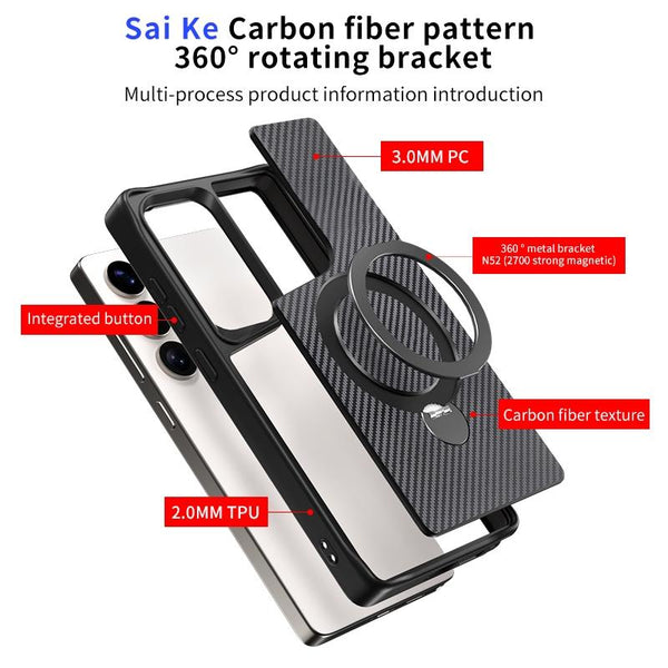 For Samsung Galaxy S25 / S24 5G Carbon Fiber Texture 360 MagSafe Holder Phone Case(Purple)