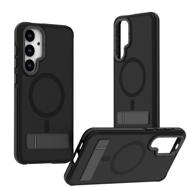 For Samsung Galaxy S25+ / S24+ 5G Dual-Color Skin Feel Magsafe Phone Case with Holder(Black)