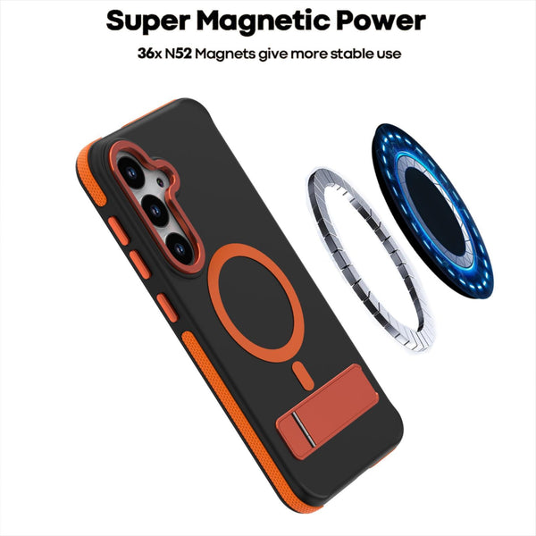For Samsung Galaxy S25 / S24 5G Dual-Color Skin Feel Magsafe Phone Case with Holder(Purple)