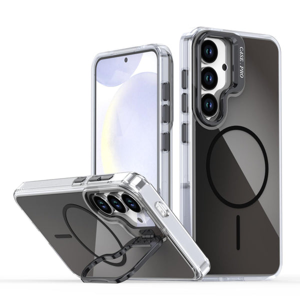 For Samsung Galaxy S25+ / S24+ 5G Gradient Discolor Lens Kickstand Magsafe Phone Case(Black)
