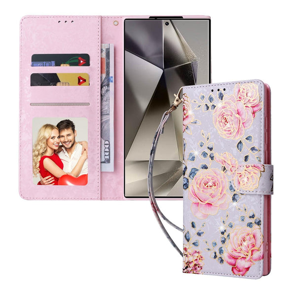 For Samsung Galaxy S25 Ultra 5G Bronzing Painting RFID Leather Phone Case(Pastoral Rose)