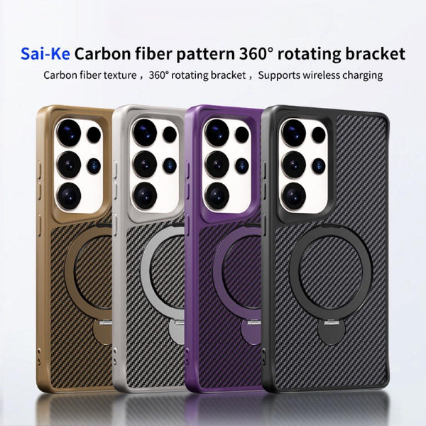 For Samsung Galaxy S25 Ultra 5G Carbon Fiber Texture 360 MagSafe Holder Phone Case(Black)