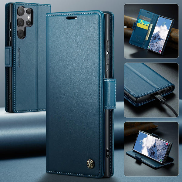 For Samsung Galaxy S25 Ultra 5G CaseMe 023 Butterfly Buckle Litchi Texture RFID Anti-theft Leather Phone Case(Blue)