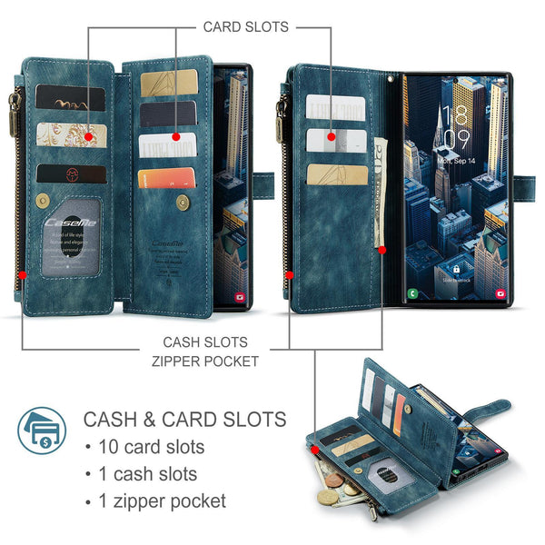 For Samsung Galaxy S25 Ultra 5G CaseMe C30 Card Slots Zipper Wallet Leather Phone Case(Blue)