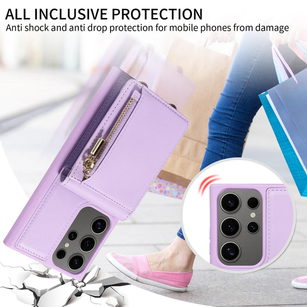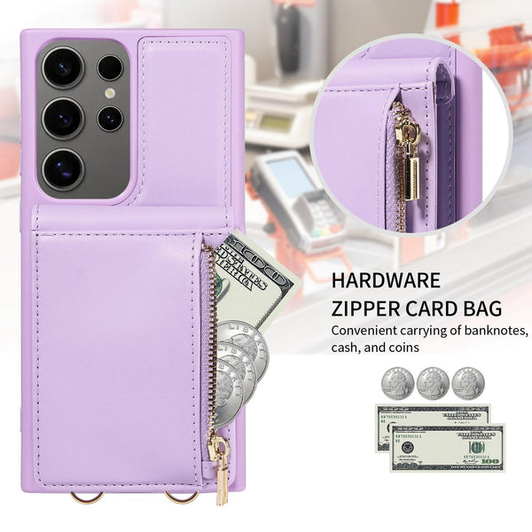 For Samsung Galaxy S25 Ultra 5G Crossbody Lanyard Zipper Wallet Leather Phone Case(Purple)