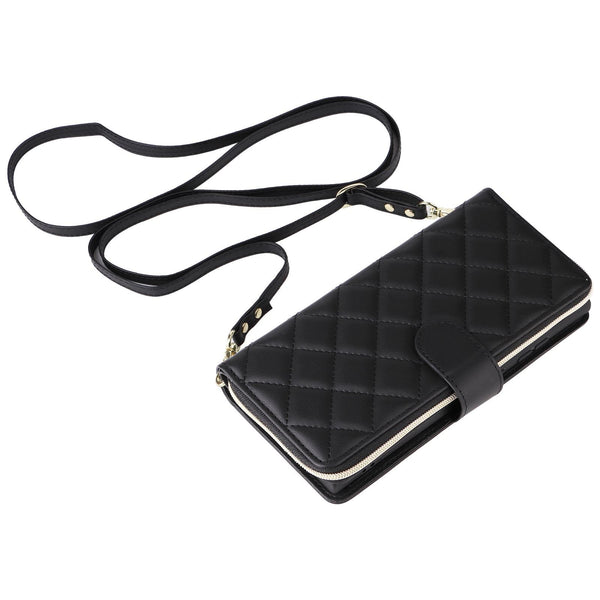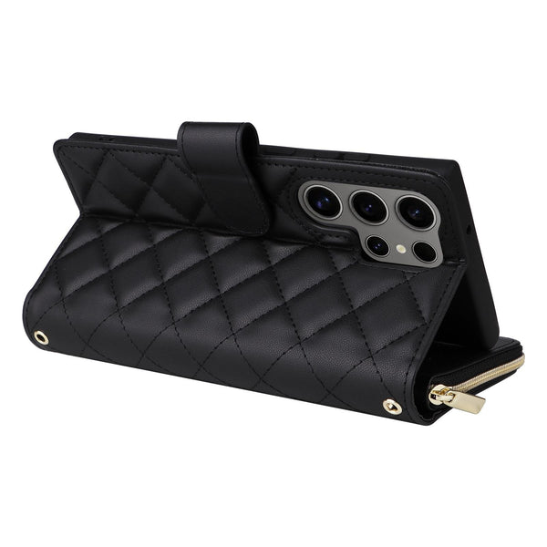 For Samsung Galaxy S25 Ultra 5G Crossbody Rhombic Zipper Tower Buckle Leather Phone Case with Lanyard(Black)