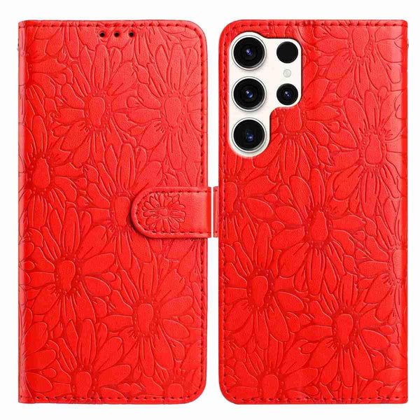 For Samsung Galaxy S25 Ultra 5G Daisy Embossed Leather Phone Case(Red)