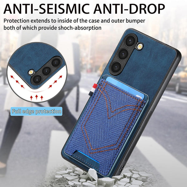 For Samsung Galaxy S25 Ultra 5G Denim Texture Leather Skin Phone Case with Card Slot(Blue)