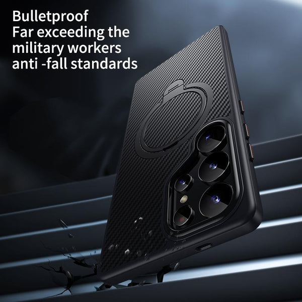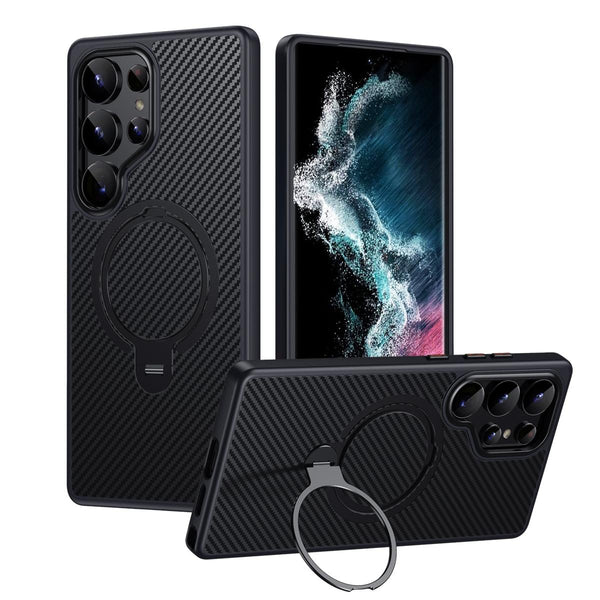 For Samsung Galaxy S25 Ultra 5G Double Ring MagSafe Holder Carbon Fibre Phone Case(Black)