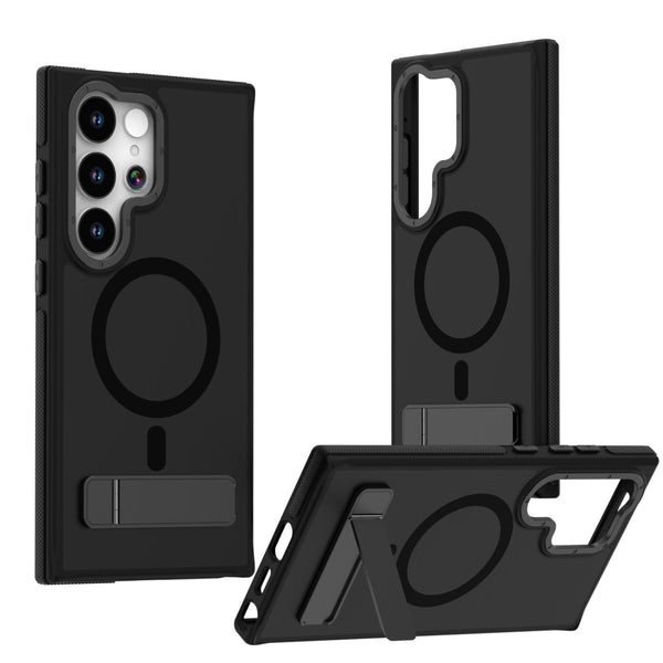 For Samsung Galaxy S25 Ultra 5G Dual-Color Skin Feel Magsafe Phone Case with Holder(Black)