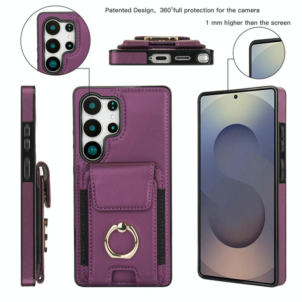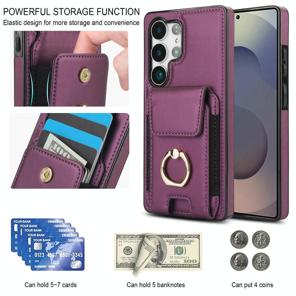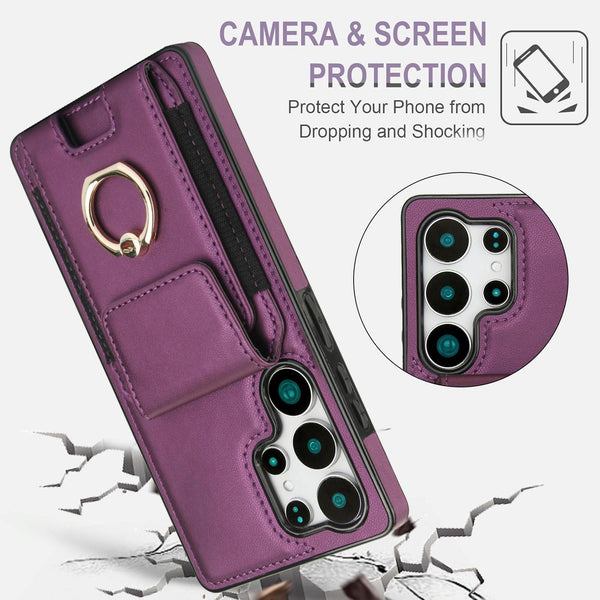 For Samsung Galaxy S25 Ultra 5G Elastic Card Bag Ring Holder Phone Case(Purple)