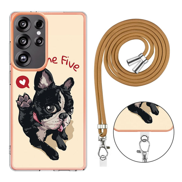 For Samsung Galaxy S25 Ultra 5G Electroplating Dual-side IMD Phone Case with Lanyard(Lucky Dog)