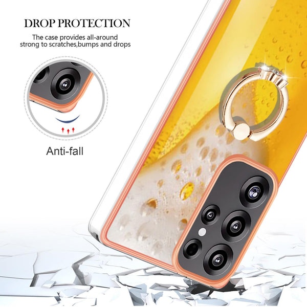 For Samsung Galaxy S25 Ultra 5G Electroplating Dual-side IMD Phone Case with Ring Holder(Draft Beer)