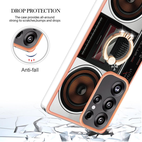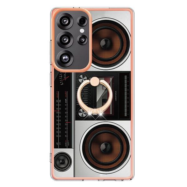 For Samsung Galaxy S25 Ultra 5G Electroplating Dual-side IMD Phone Case with Ring Holder(Retro Radio)