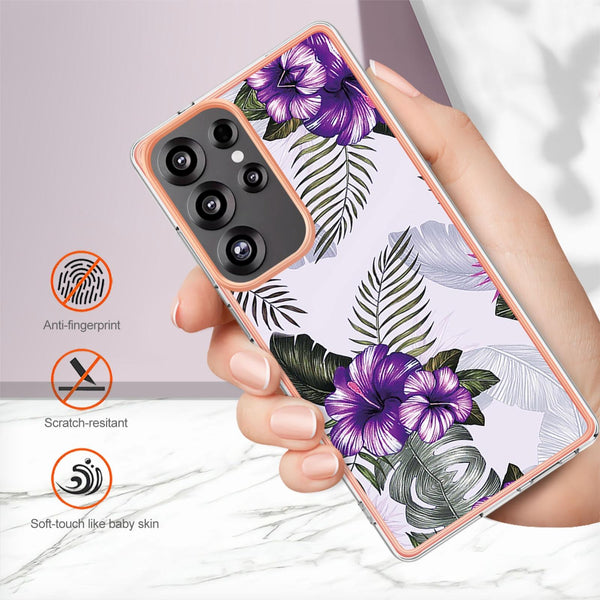 For Samsung Galaxy S25 Ultra 5G Electroplating IMD TPU Phone Case(Purple Flower)