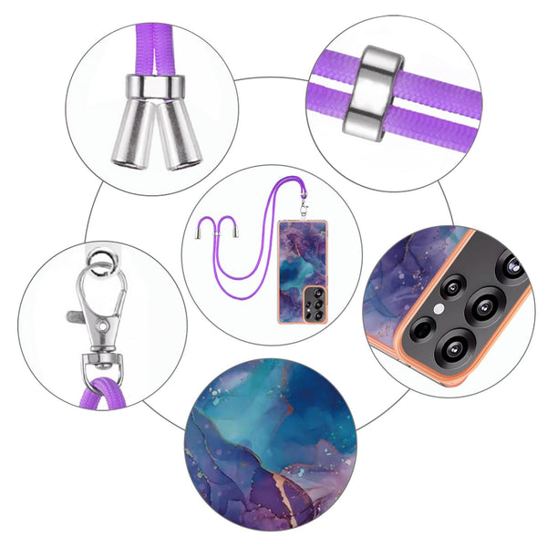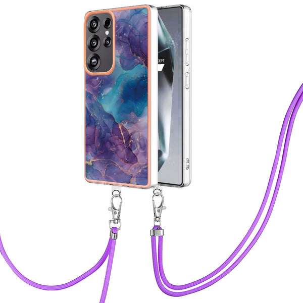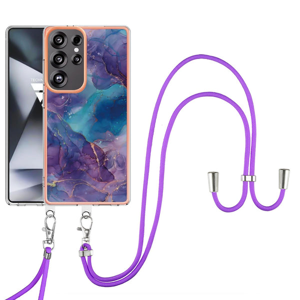 For Samsung Galaxy S25 Ultra 5G Electroplating Marble Dual-side IMD Phone Case with Lanyard(Purple 016)