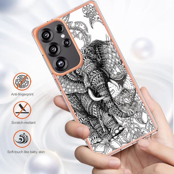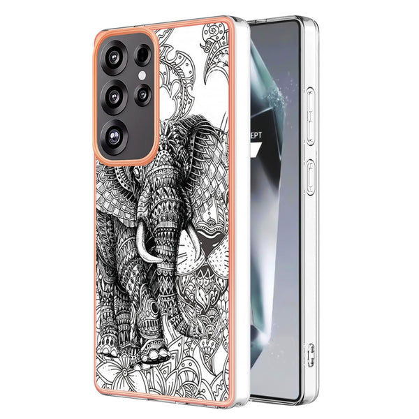 For Samsung Galaxy S25 Ultra 5G Electroplating Marble Dual-side IMD Phone Case(Totem Elephant)