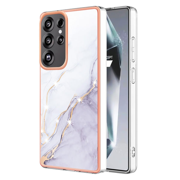 For Samsung Galaxy S25 Ultra 5G Electroplating Marble Pattern Dual-side IMD TPU Shockproof Phone Case(White 006)