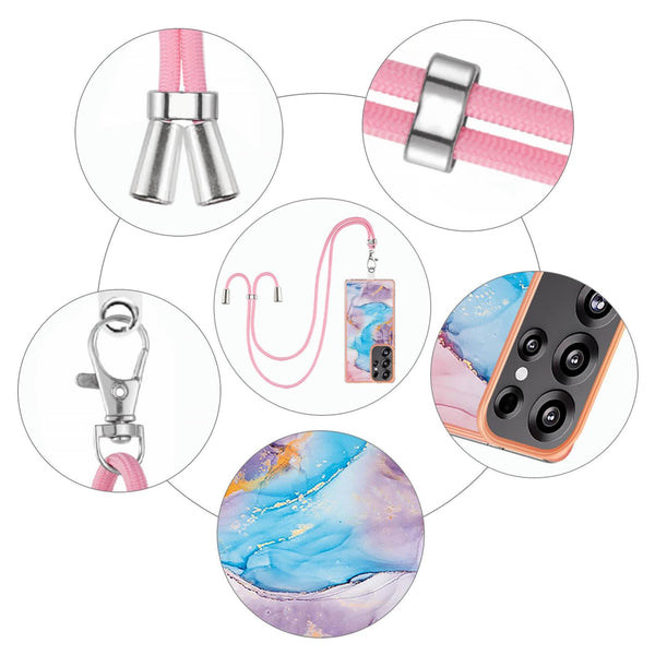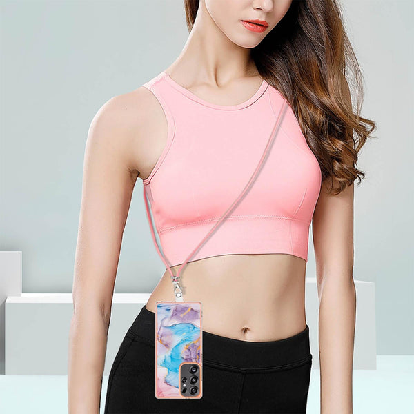 For Samsung Galaxy S25 Ultra 5G Electroplating Pattern IMD TPU Shockproof Case with Neck Lanyard(Milky Way Blue Marble)
