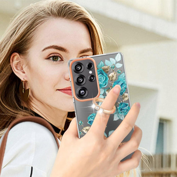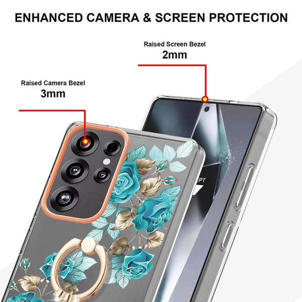 For Samsung Galaxy S25 Ultra 5G Flowers and Plants Series IMD TPU Phone Case with Ring Holder(Blue Rose)