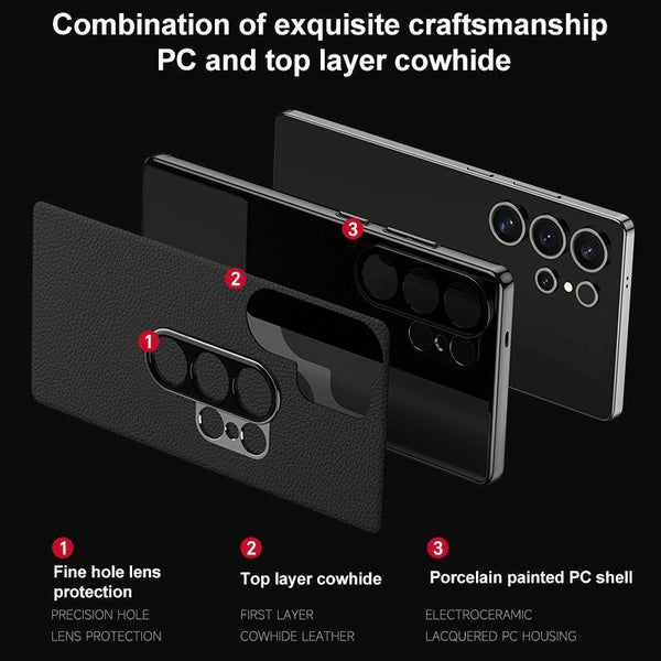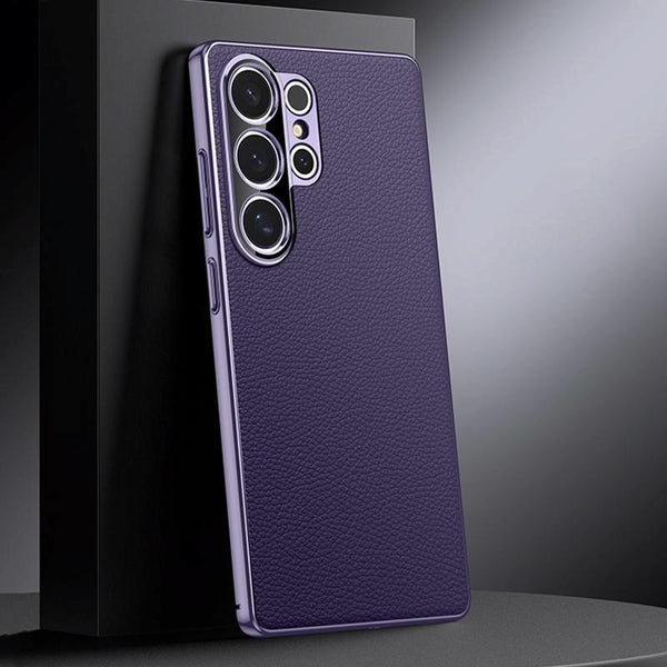 For Samsung Galaxy S25 Ultra 5G Genuine Leather PC Phone Case(Dark Purple)