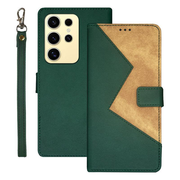 For Samsung Galaxy S25 Ultra 5G idewei Two-color Splicing Leather Phone Case(Green)
