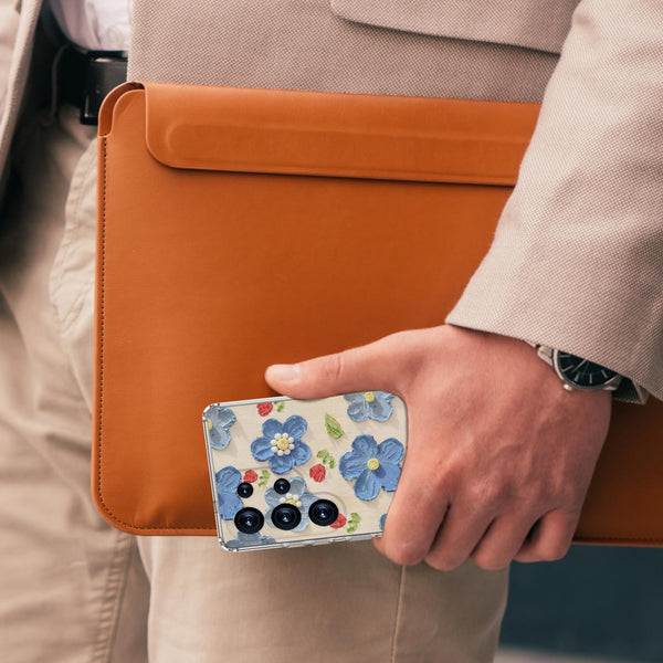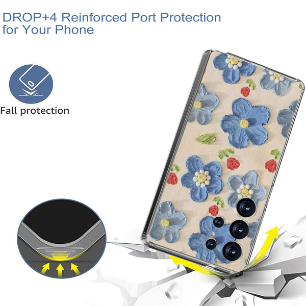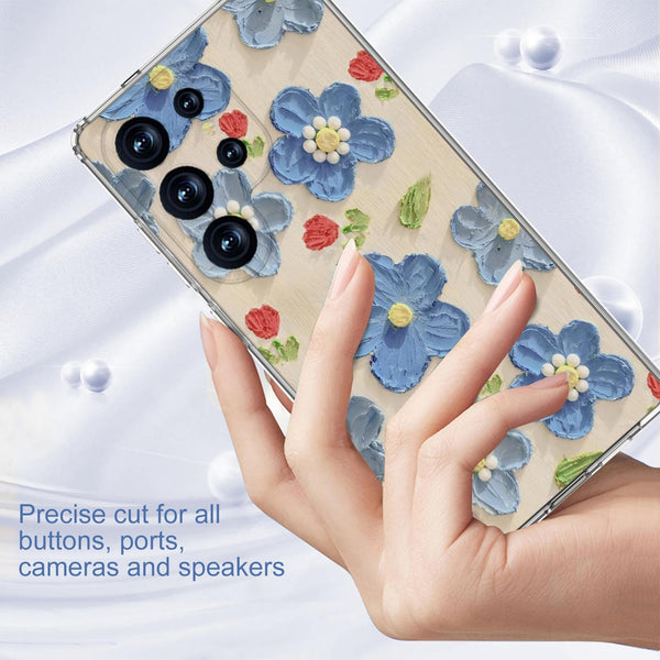 For Samsung Galaxy S25 Ultra 5G IMD Double Piece Simple Fresh Shockproof Phone Case(Blue Flower)