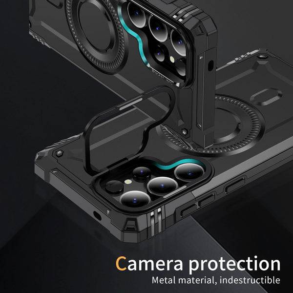 For Samsung Galaxy S25 Ultra 5G Lens Holder MagSafe Phone Case(Black)