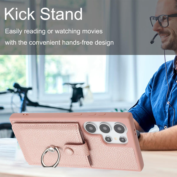 For Samsung Galaxy S25 Ultra 5G Litchi Texture Drawing Card Bag Ring Holder Phone Case(Brown)