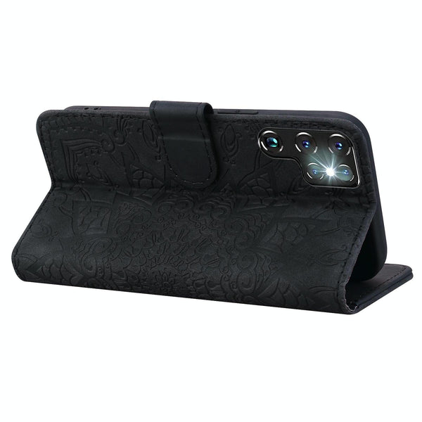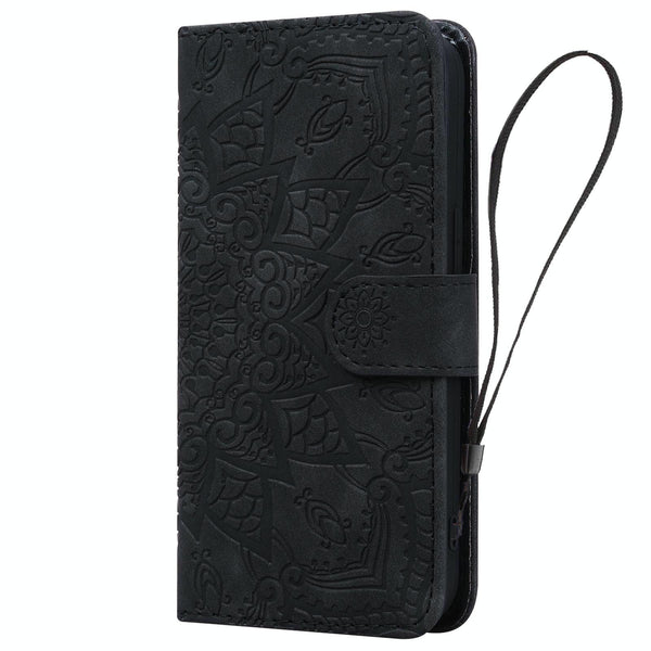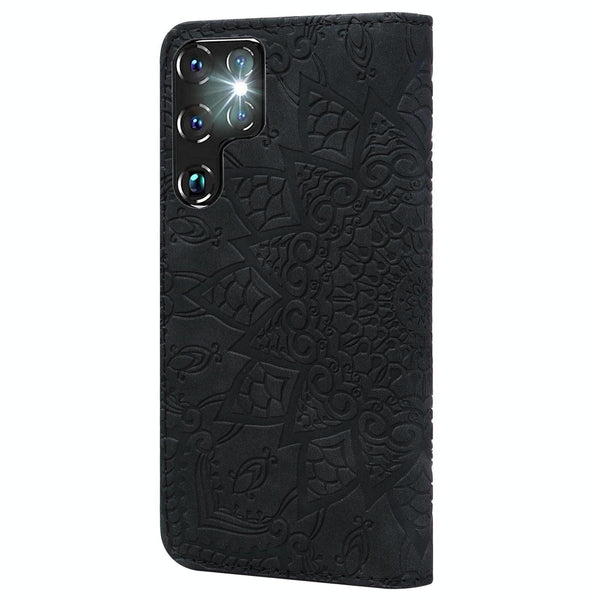 For Samsung Galaxy S25 Ultra 5G Mandala Embossed Dual-Fold Calf Leather Phone Case(Black)