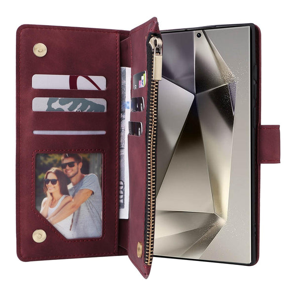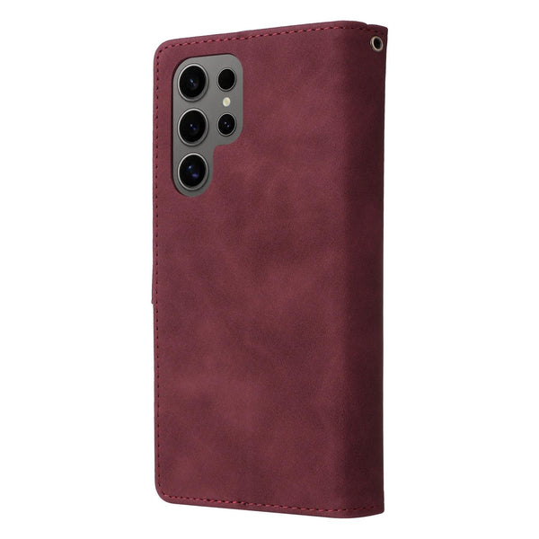 For Samsung Galaxy S25 Ultra 5G Multifunctional Frosted Zipper Wallet Leather Phone Case(Wine Red)