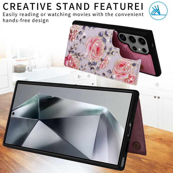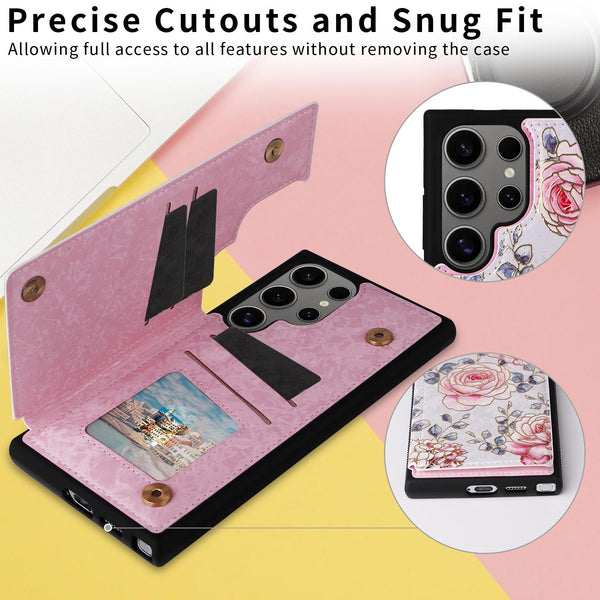 For Samsung Galaxy S25 Ultra 5G Printed Double Buckle RFID Anti-theft Phone Case(Pastoral Rose)
