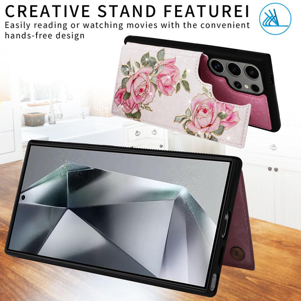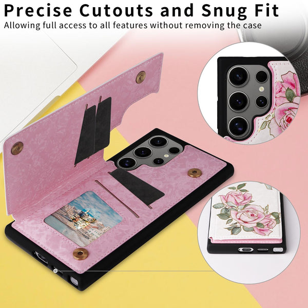 For Samsung Galaxy S25 Ultra 5G Printed Double Buckle RFID Anti-theft Phone Case(Rose)
