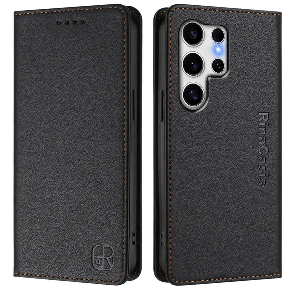 For Samsung Galaxy S25 Ultra 5G RC01 Dual-Folded Magnetic Suction RFID Leather Phone Case(Black)