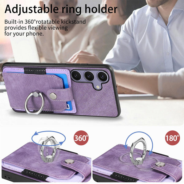 For Samsung Galaxy S25 Ultra 5G Retro Skin-feel Ring Card Wallet Phone Case(Purple)