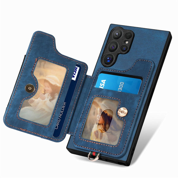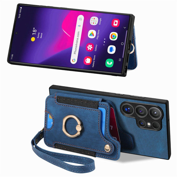 For Samsung Galaxy S25 Ultra 5G Retro Skin-feel Ring Multi-card Wallet Phone Case(Blue)