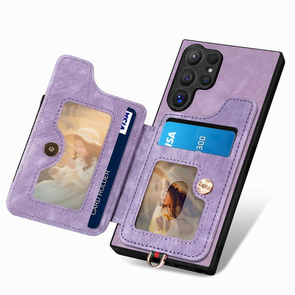 For Samsung Galaxy S25 Ultra 5G Retro Skin-feel Ring Multi-card Wallet Phone Case(Purple)