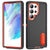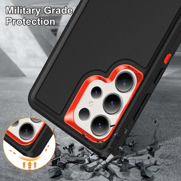 For Samsung Galaxy S25 Ultra 5G Rugged PC Hybrid Silicone Phone Case with Holder(Black+Orange)