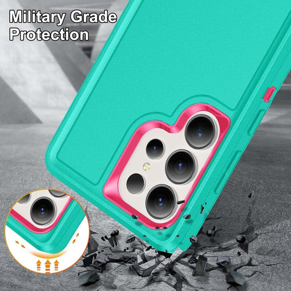 For Samsung Galaxy S25 Ultra 5G Rugged PC Hybrid Silicone Phone Case with Holder(Light Green+Rose Red)