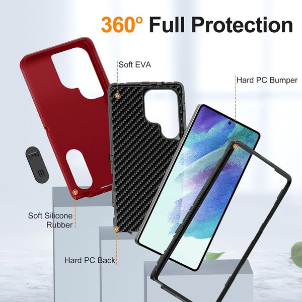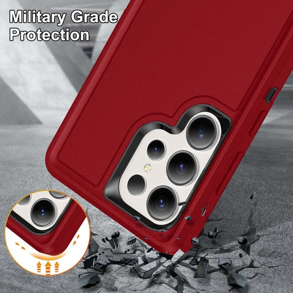 For Samsung Galaxy S25 Ultra 5G Rugged PC Hybrid Silicone Phone Case with Holder(Red+Black)