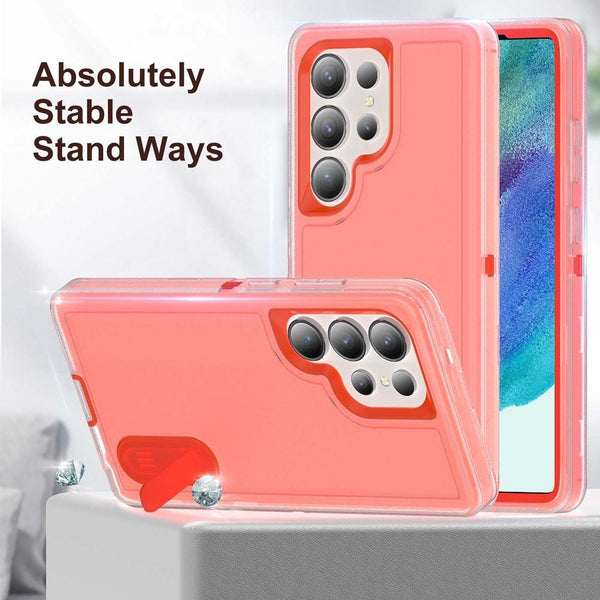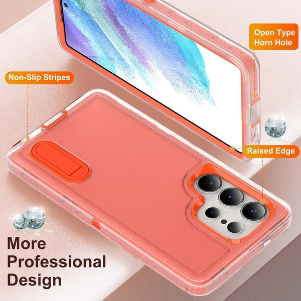 For Samsung Galaxy S25 Ultra 5G Rugged PC Hybrid Silicone Phone Case with Holder(Transparent+Orange)