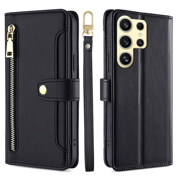 For Samsung Galaxy S25 Ultra 5G Sheep Texture Cross-body Zipper Wallet Leather Phone Case(Black)