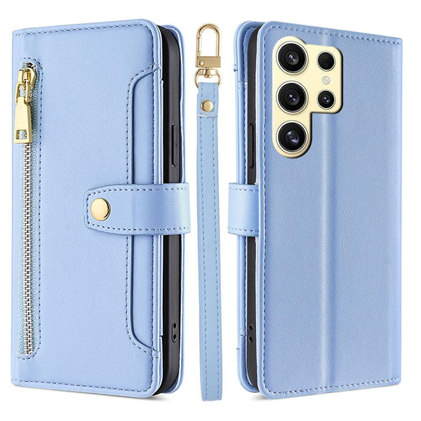 For Samsung Galaxy S25 Ultra 5G Sheep Texture Cross-body Zipper Wallet Leather Phone Case(Blue)