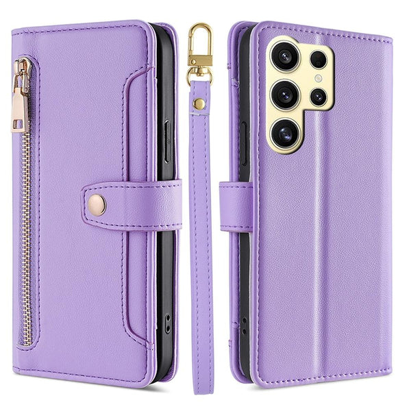 For Samsung Galaxy S25 Ultra 5G Sheep Texture Cross-body Zipper Wallet Leather Phone Case(Purple)