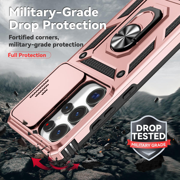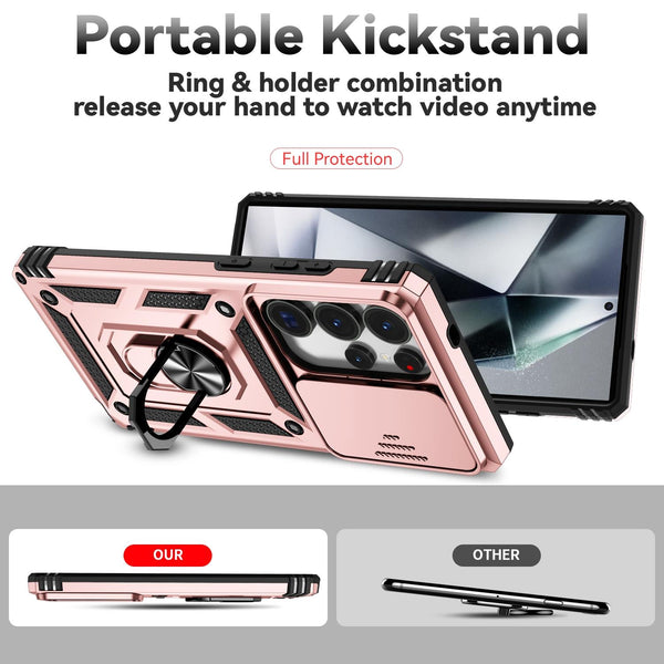 For Samsung Galaxy S25 Ultra 5G Sliding Camshield Holder Phone Case(Rose Gold)
