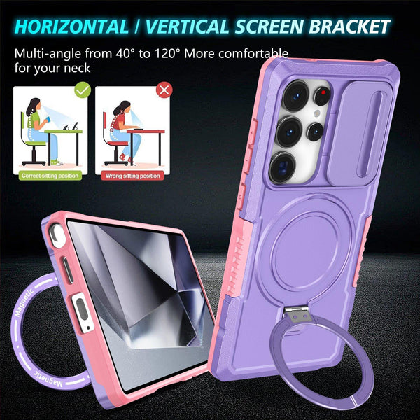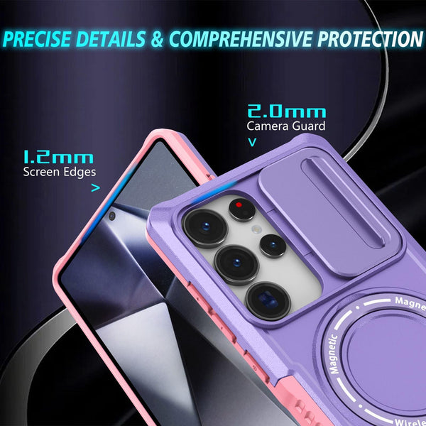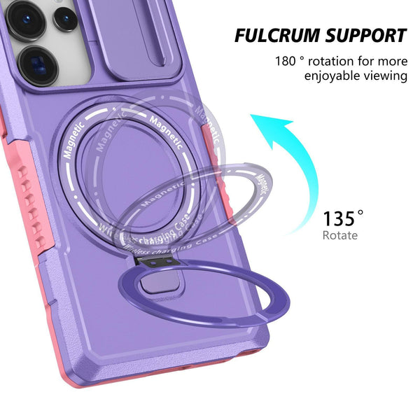 For Samsung Galaxy S25 Ultra 5G Sliding Camshield MagSafe Holder TPU Hybrid PC Phone Case(Pink Purple)