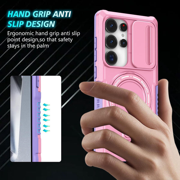 For Samsung Galaxy S25 Ultra 5G Sliding Camshield MagSafe Holder TPU Hybrid PC Phone Case(Purple Pink)