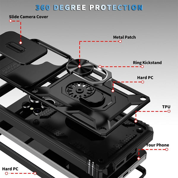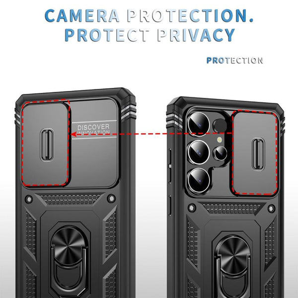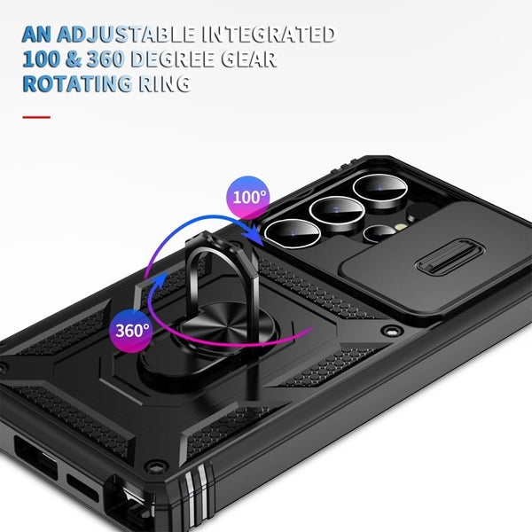 For Samsung Galaxy S25 Ultra 5G Sliding Camshield TPU Hybrid PC Phone Case with Holder(Black)